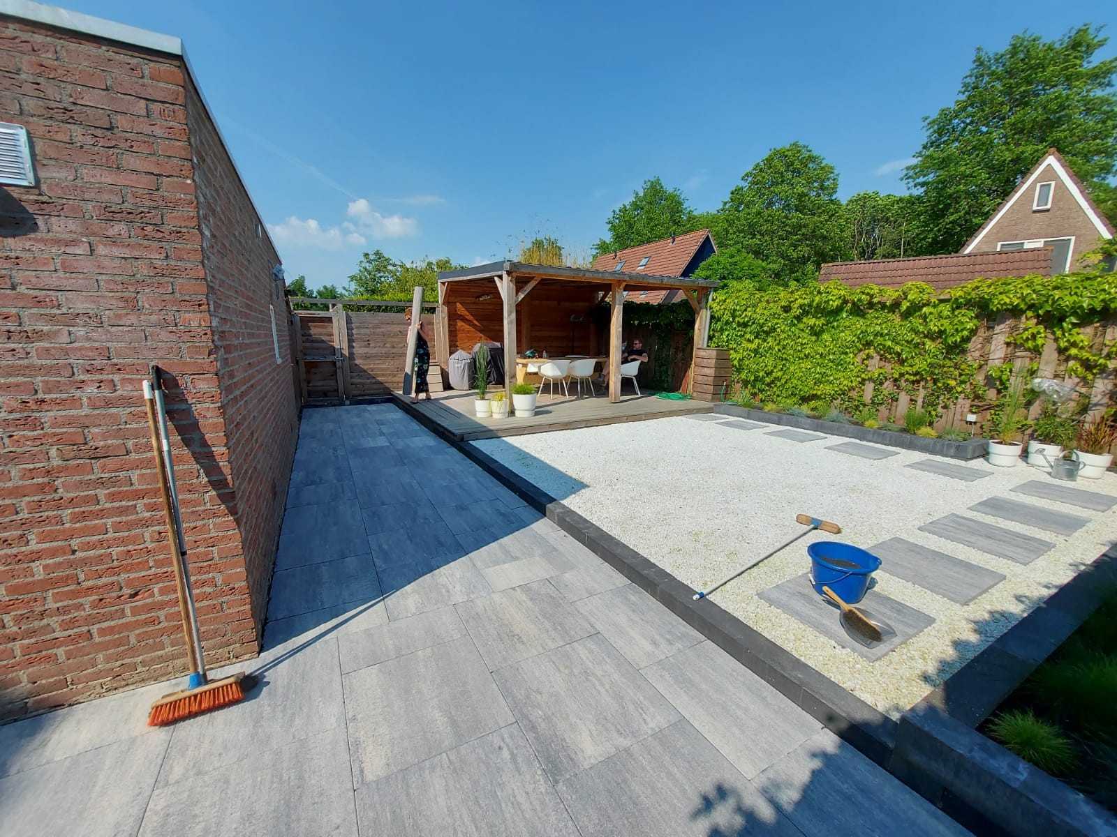 In gieten hebben onze mannen deze achtertuin voorzien van een nieuwe tegels ...